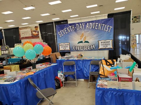 As a church, we designed a banner, in fact we designed two, for us to use at our fair booth. One had our church name and the other one was to promote the health message. We brought literature to share, but didn’t forget the most important part, KIDS! This year we wanted to bring people to our booth by drawing parents in with their kids. So we bought balloons, coloring books, activity books, faith bracelets, pins, and small animals with Bible verses attached to them. We also gave out copies of Our Little Friend magazine. One thing we were able to give out to people both big and small was donated from 3ABN, It Is Written, and Voice of Prophecy – 200 each of their tote bags. That was a total of 600 tote bags! As fairgoers came by our booth, we were able to give out these tote bags with literature and fun items for the kids.